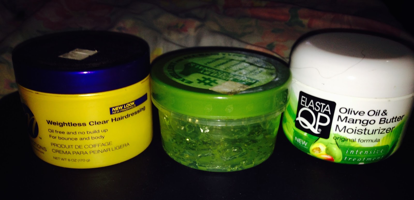 6. Then I added my Elasta QP moisturizer which are great for braid outs. Then I add a teeny amount of my hairdress by Motions, the review is here. Then I parted my hair in four and added a dime size of Eco Styler Gel to each section. I then proceed to braid each section.